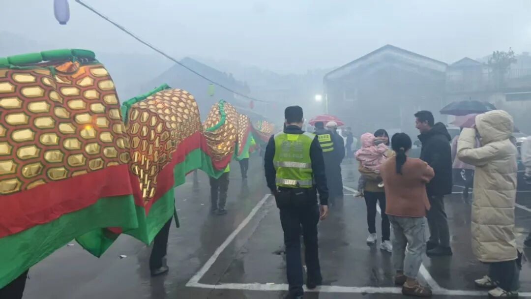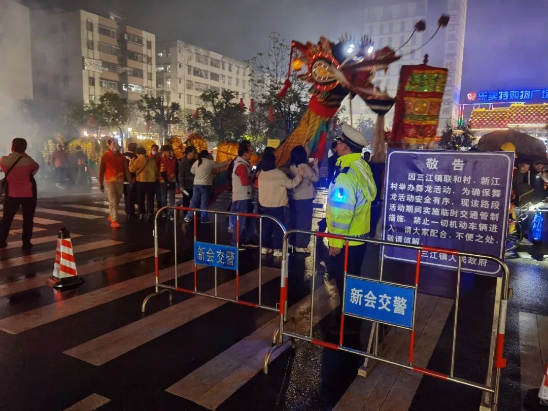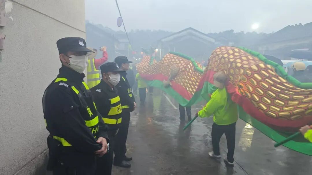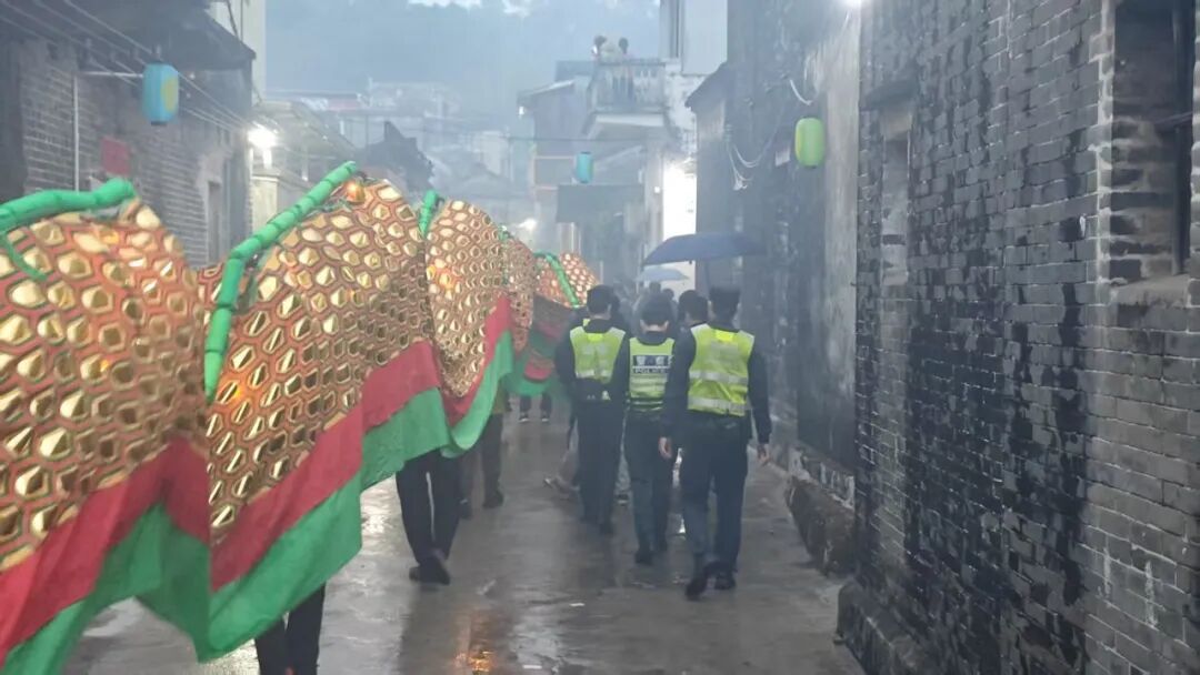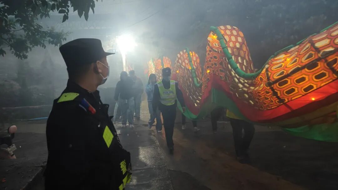 警灯与龙灯交织