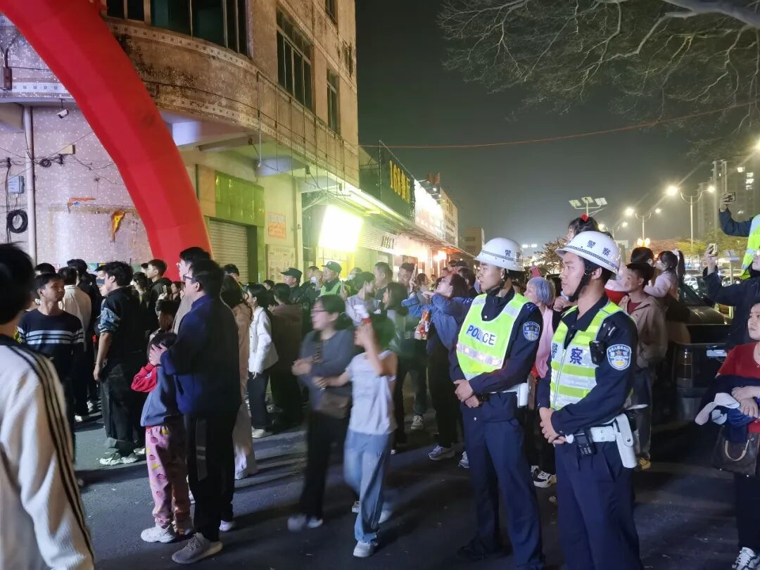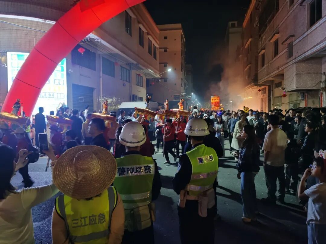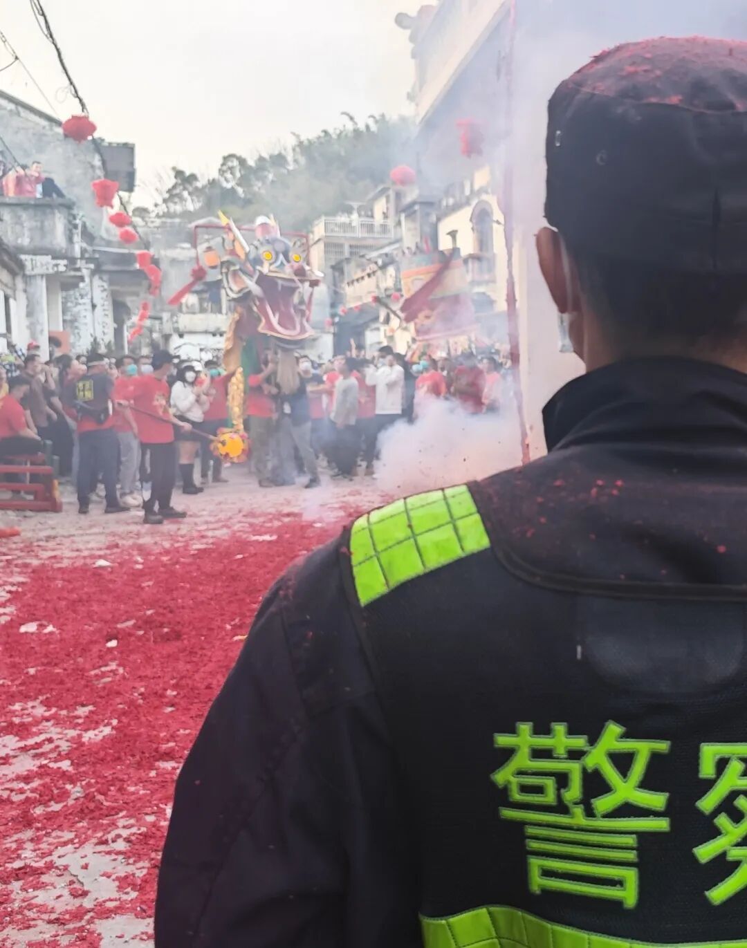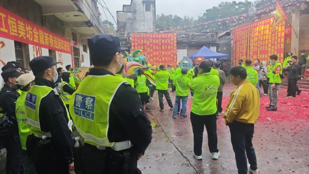 警灯与龙灯交织